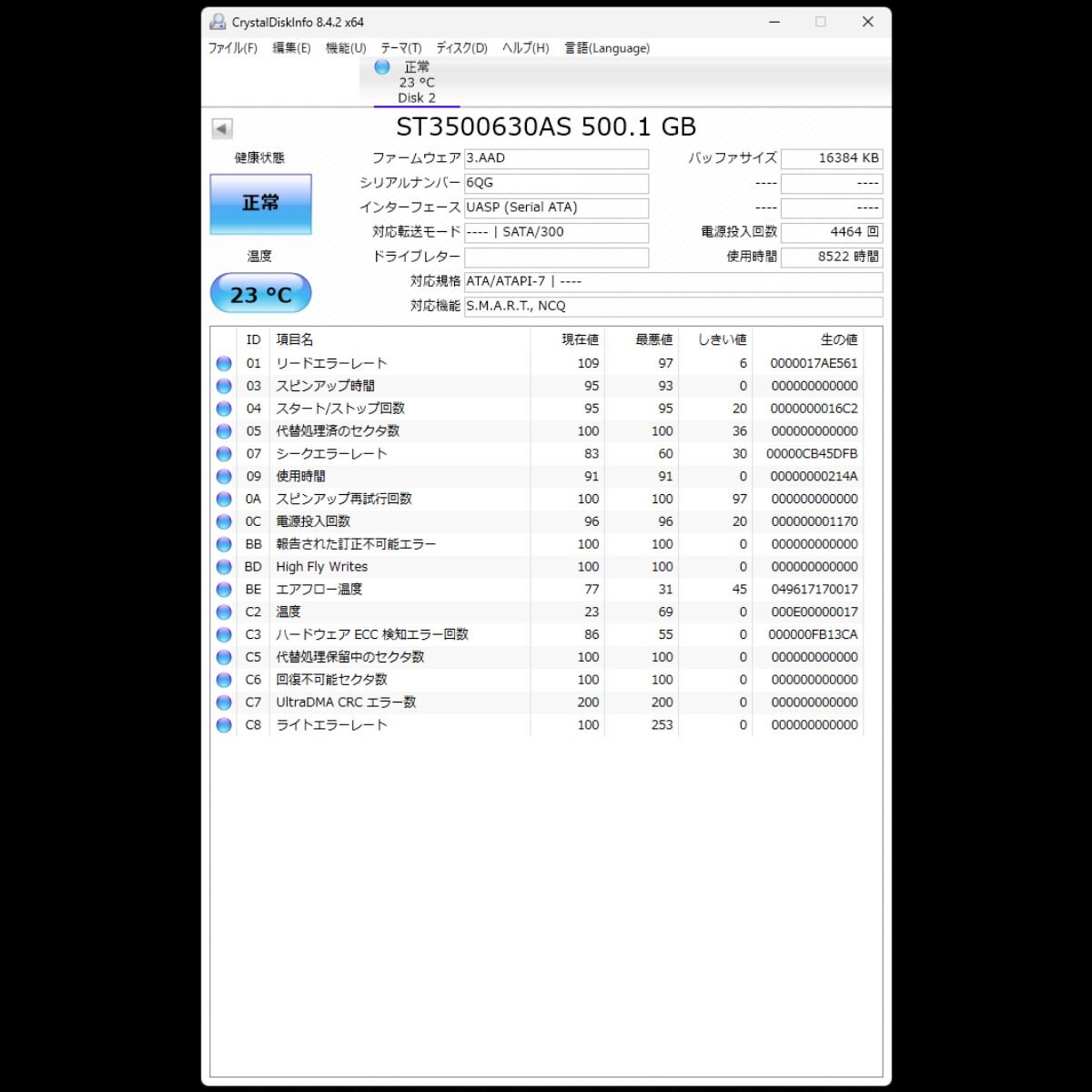 電源投入回数:4464回