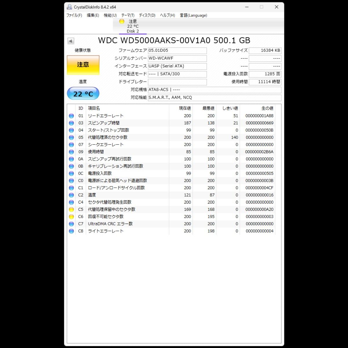 CrystalDiskInfoの情報はUSB変換アダプタを使用していますので正確性はわかりかねます。