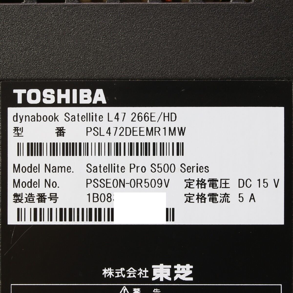 TOSHIBA|15.6型|PSL472DEEMR1MW|L47 266E/HD|Core i5 560M/4GB/Win7Proキー付|Dynabook|Satellite Pro S500|ノートPC|東芝|230544