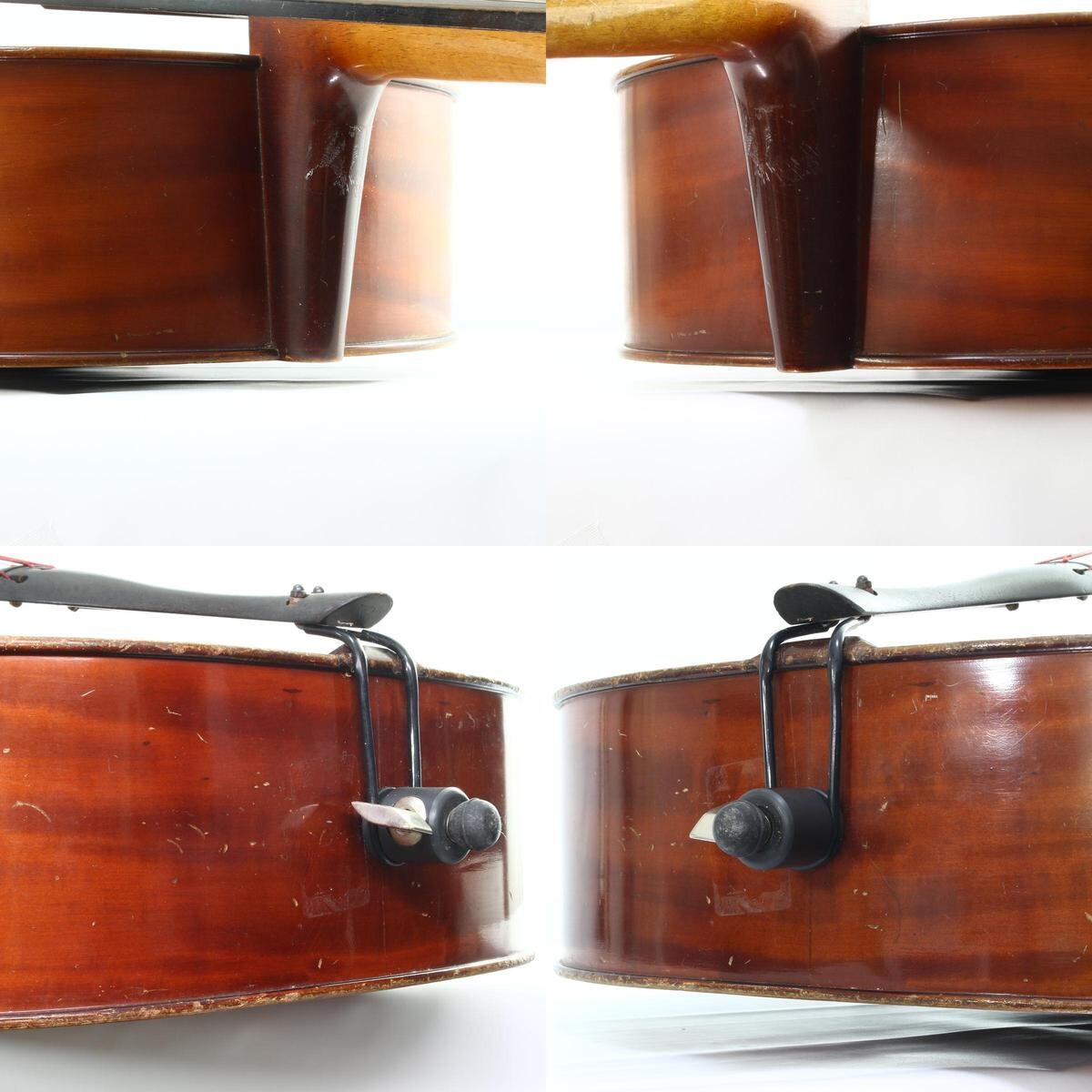 魂柱はしっかり立っていますが、ペグが固定できず弦が張れない、全体的に傷や汚れが多く、ハードケースの用意が出来ない為ジャンク品としております。