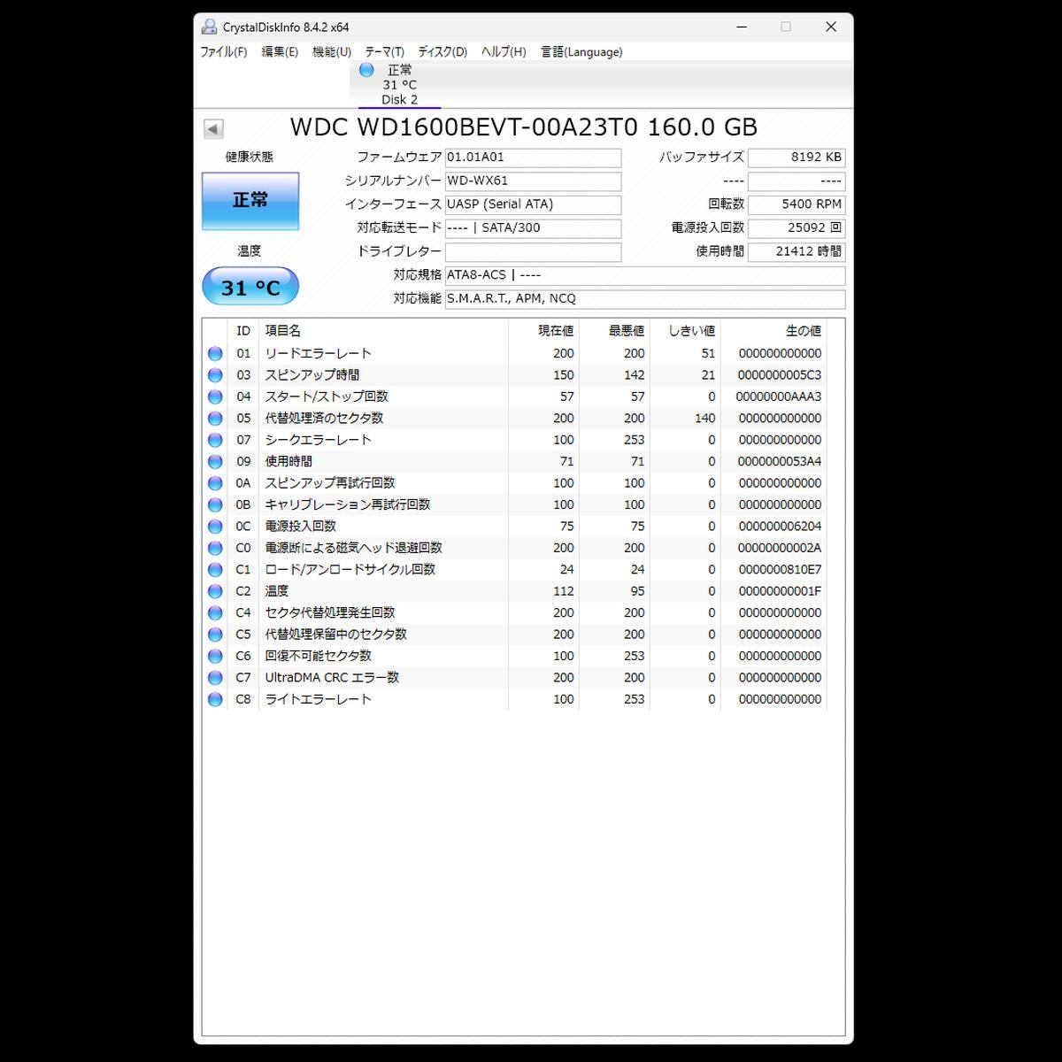 USB変換アダプタを使用している為、CrystalDiskInfoの情報の正確性まではわかりかねます。
