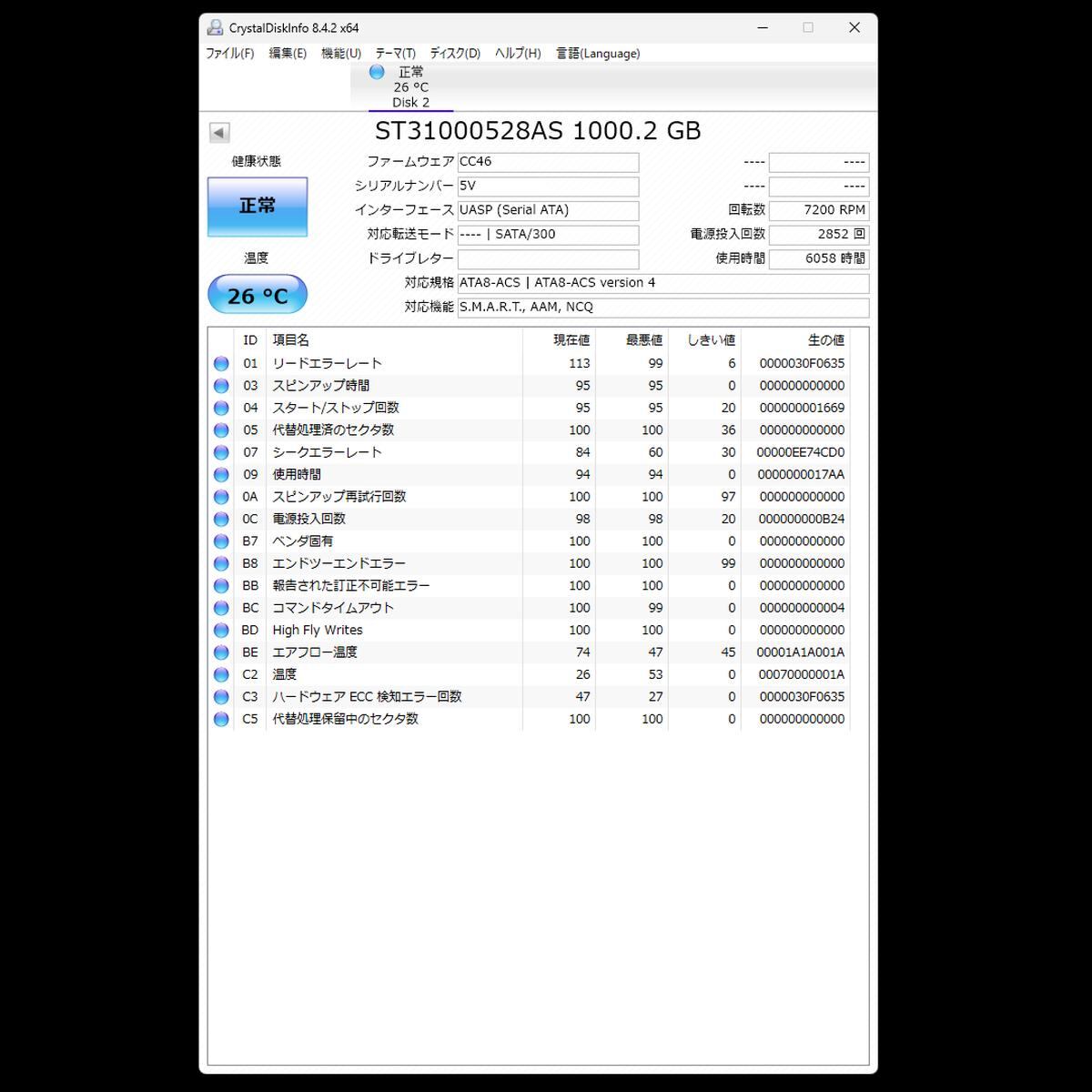 USB変換アダプタを使用している為、CrystalDiskInfoの情報の正確性まではわかりかねます。