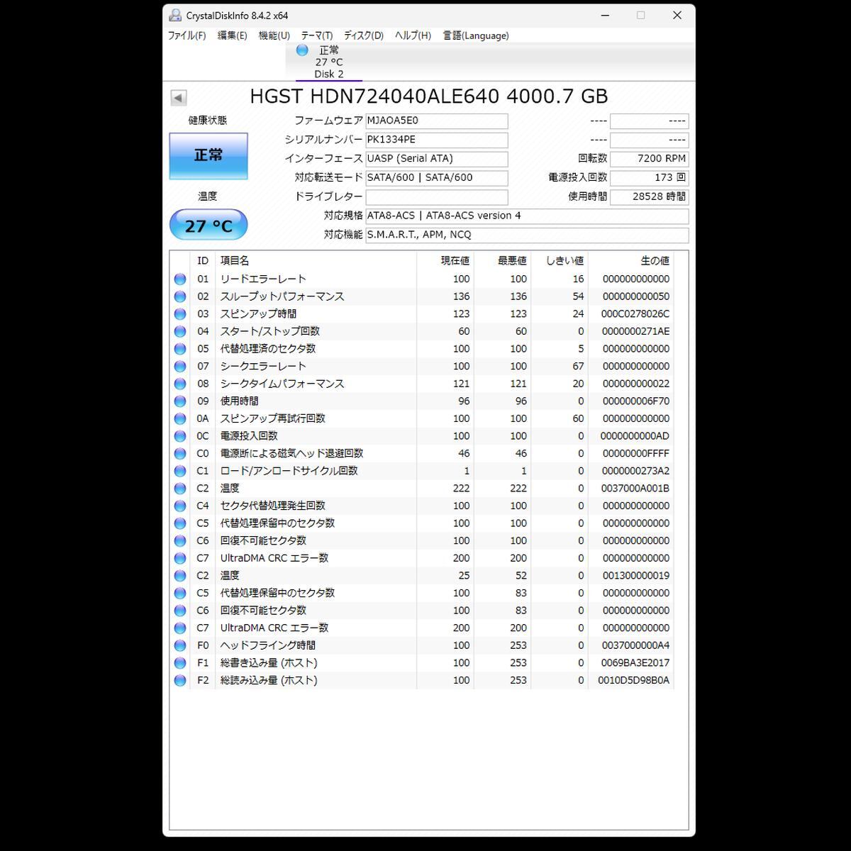 HGST|4TB|HDN724040ALE640|7200RPM|64MB|Serial ATA600|HDD|ハードディスク|HITACHI|日立|240054