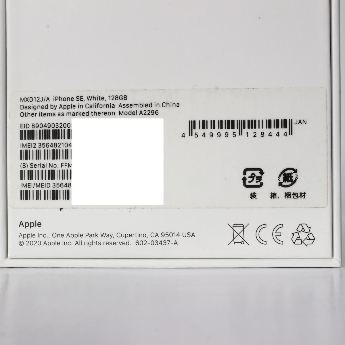 元箱と付属品のみ|iPhone SE|128GB|White|Model A2296 |Apple|240057
