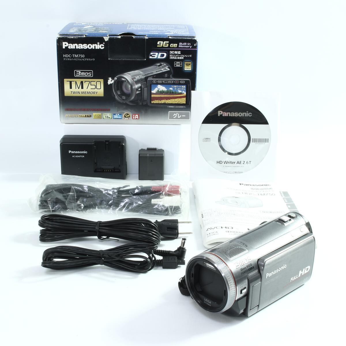 付属品:電源コード、DCコード、ACアダプター、バッテリーパック(VW-VBG130 1250mAh)、AVマルチケーブル、CD-ROM、説明書類、元箱