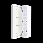 SwitchFrameはソケット部分と壁のスイッチカバーに取り付ける枠部分から成り、接着剤で固定し一体化しております。