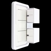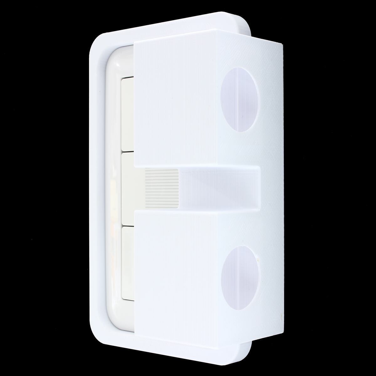 SwitchFrameはソケット部分と壁のスイッチカバーに取り付ける枠部分から成り、接着剤で固定し一体化しております。