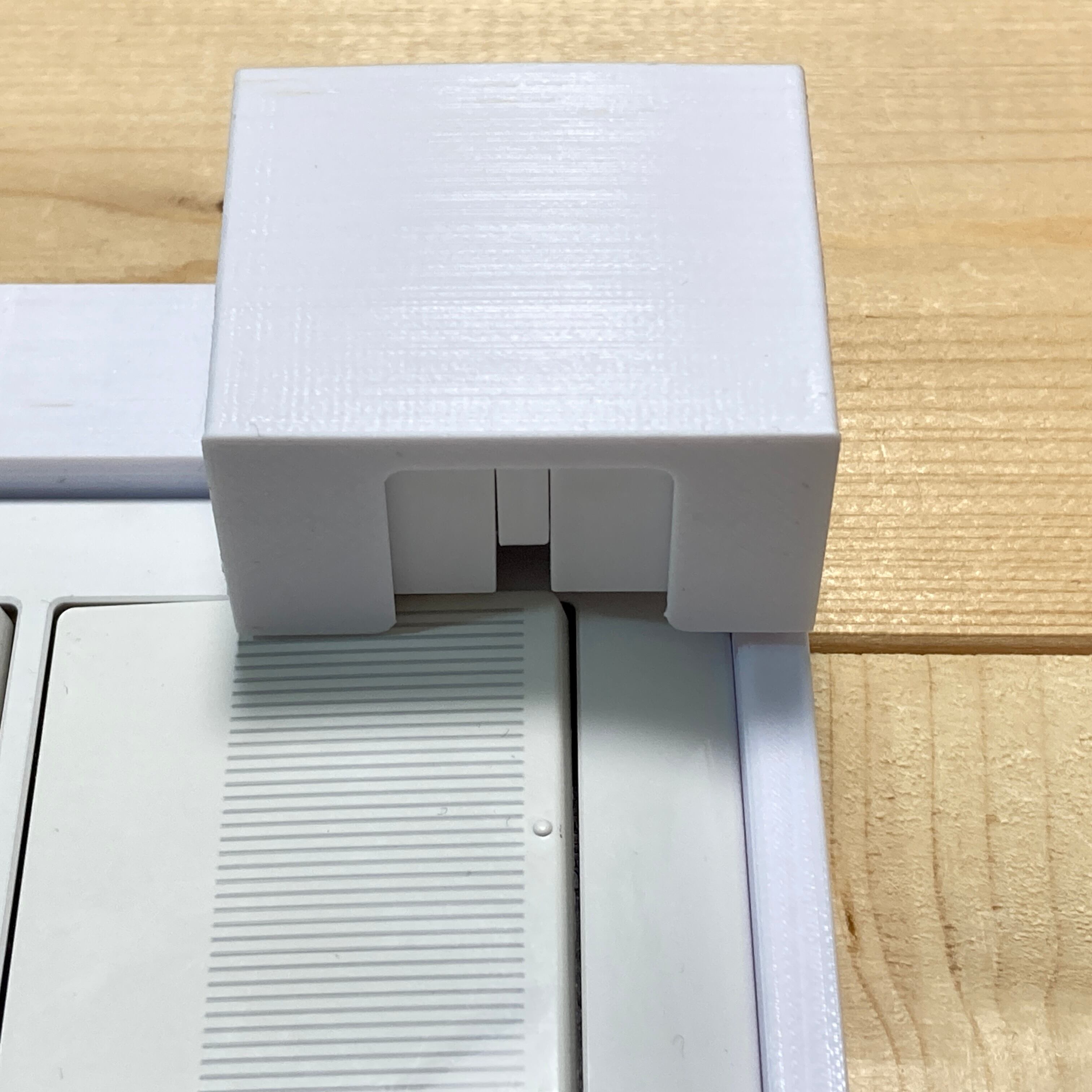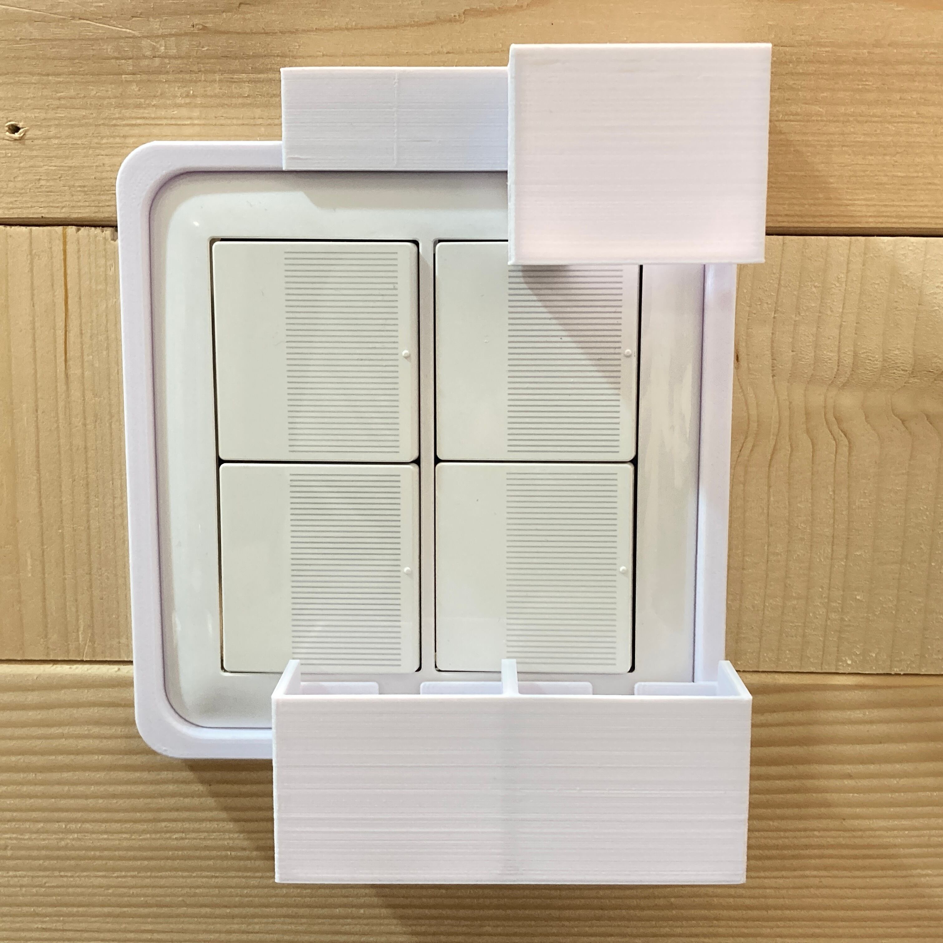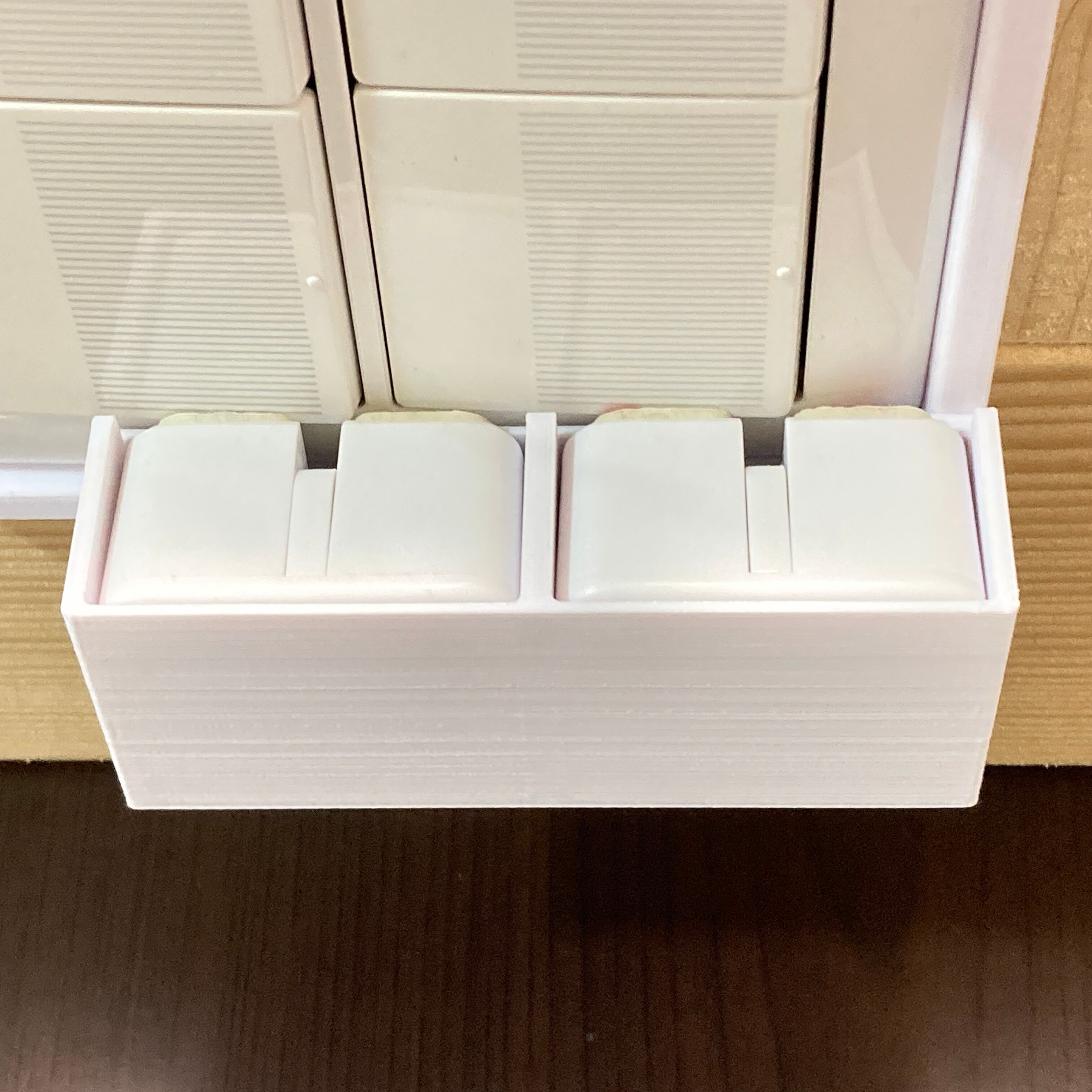 SwitchFrameはソケット部分と壁のスイッチカバーに取り付ける枠部分から成り、接着剤で固定し一体化しております。