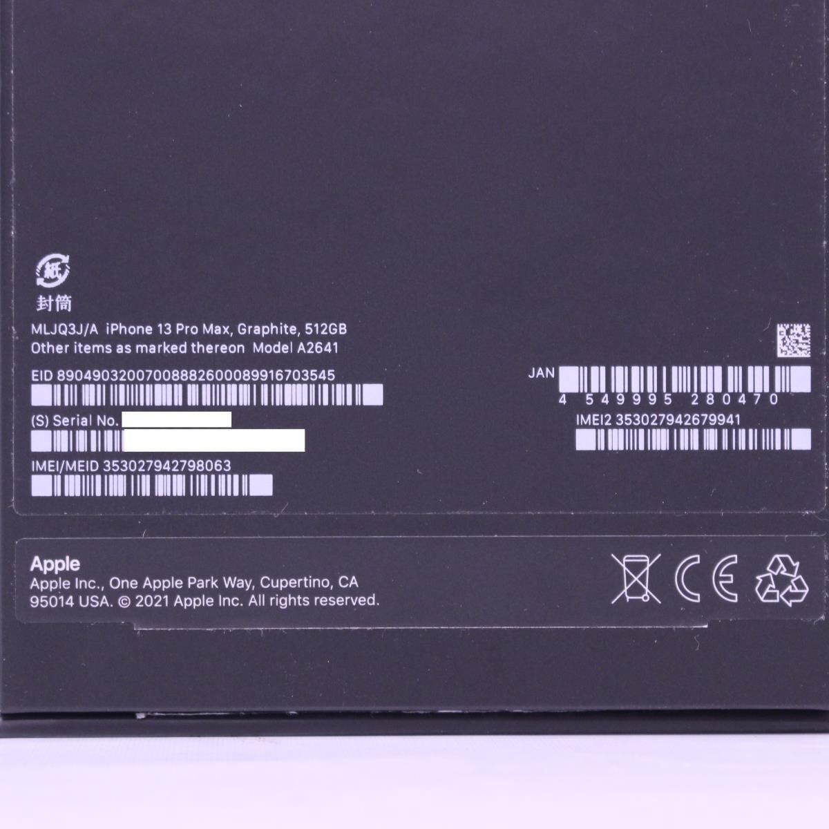 SIMフリー|iPhone 13 Pro Max|512GB|◯判定|au|SIMロック解除済|MLJQ3J/A|A2641|グラファイト|220140