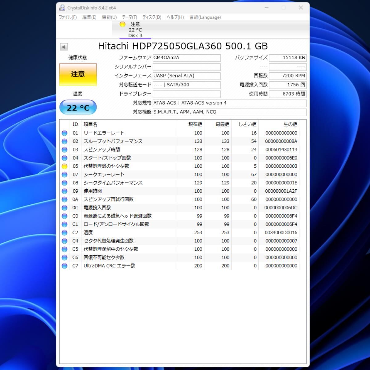 HGST|500GB|HDP725050GLA360 |Deskstar|7200RPM|16MB|HDD|ハードディスク|HITACHI|日立|230125