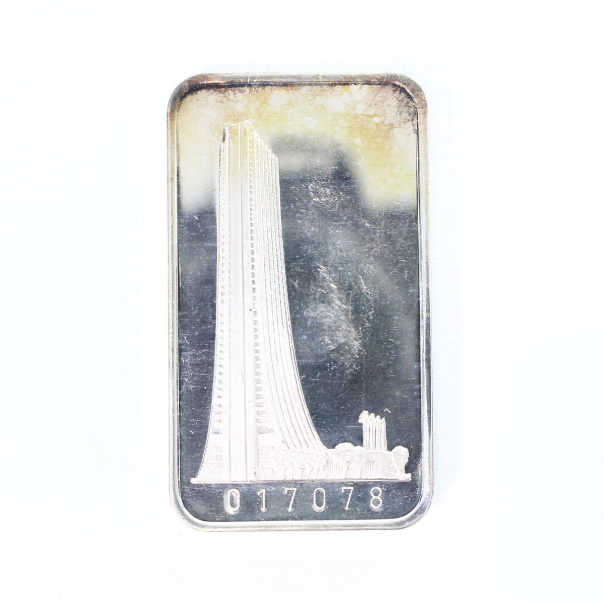 「The First National Bank of Chicago」発行のシルバーバーです。